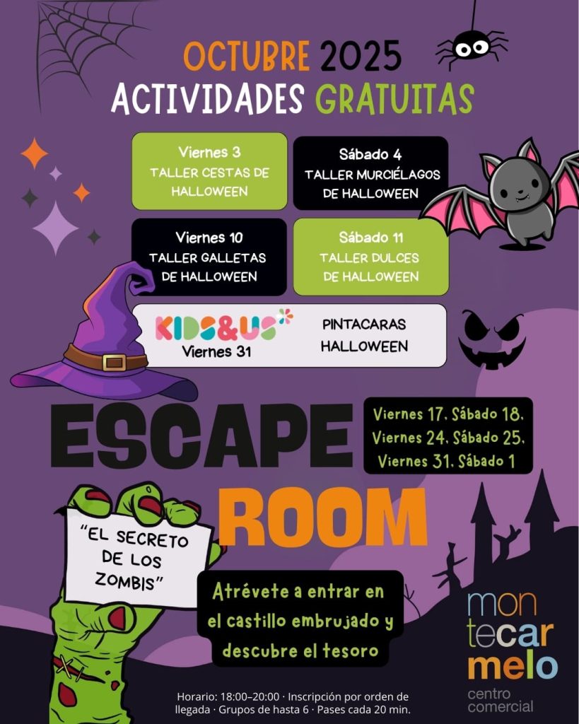 Este mes celebramos Halloween con talleres creativos, pintacaras y un escape room temático para disfrutar en familia.
